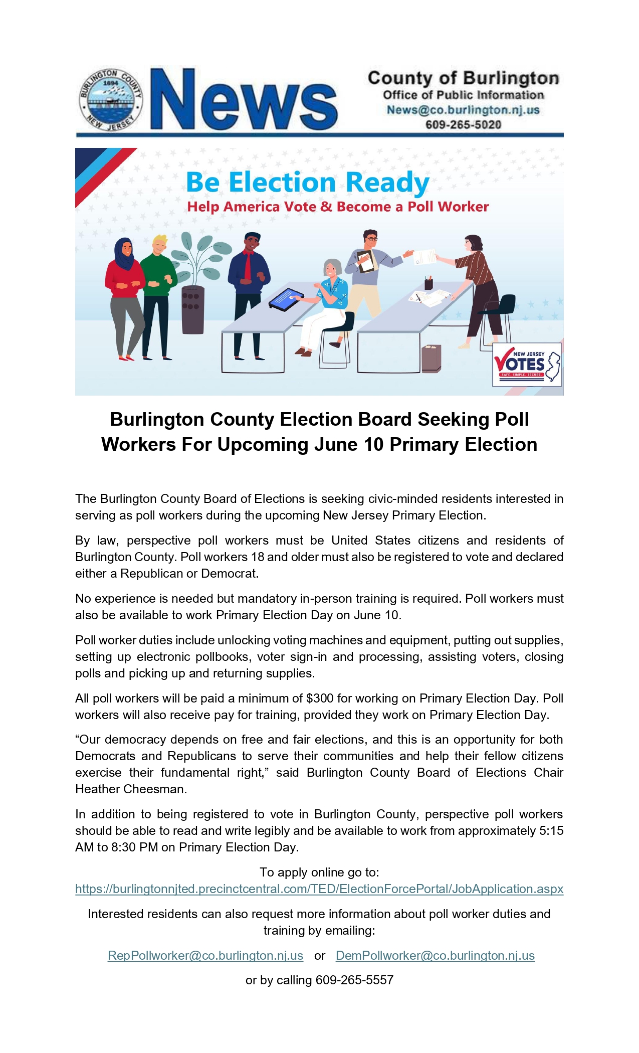 2025 Primary Election Press Release-Poll Workers Needed